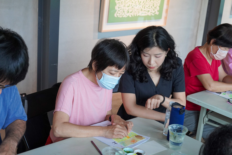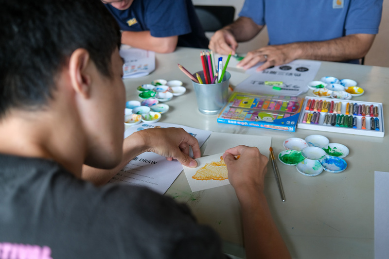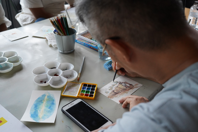 本場次工作坊由訪問藝術家 黃華真 老師從基礎色彩概念開始,帶領學員認識、調配顏色,再透過水彩、色鉛筆、蠟筆等不同媒材,將心裡的風景描繪出來。